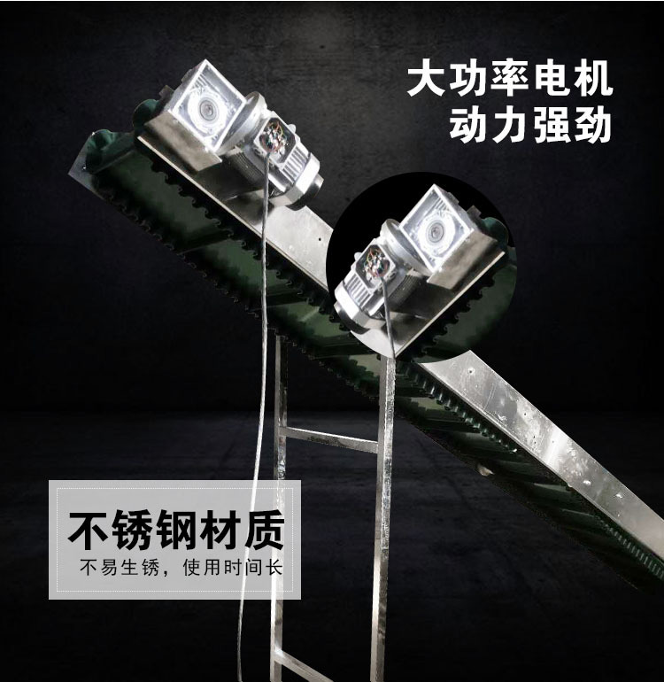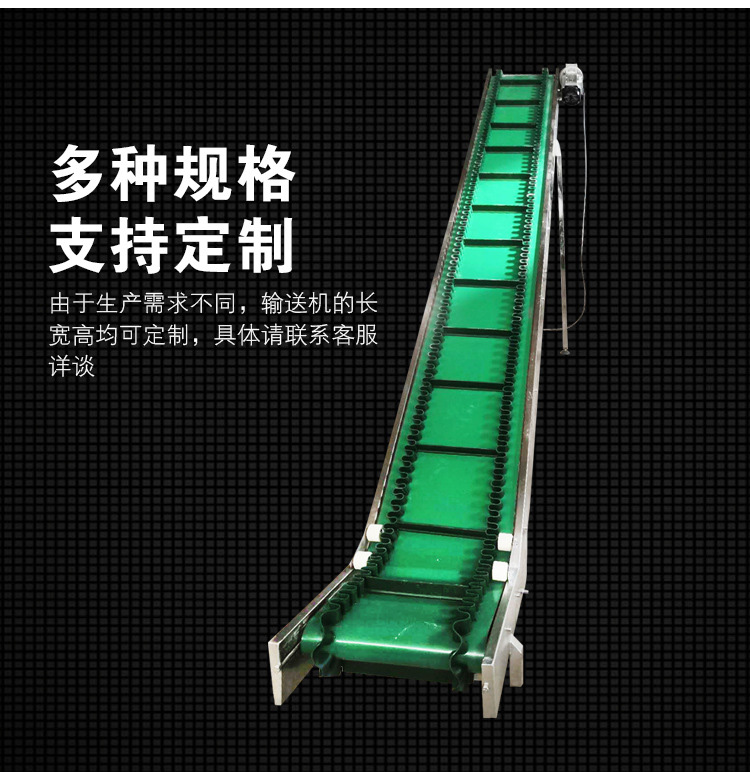 大漢裙邊皮帶輸送機可分橡膠、橡塑、PVC、PU等多種材質,除用于普通物料的輸送外,還可滿足耐油、耐腐蝕、防靜電等有特殊要求物料的輸送。波狀擋邊輸送帶根據覆蓋膠性能不同分為普通型、耐熱型、耐寒型、耐酸堿型、耐油型等。